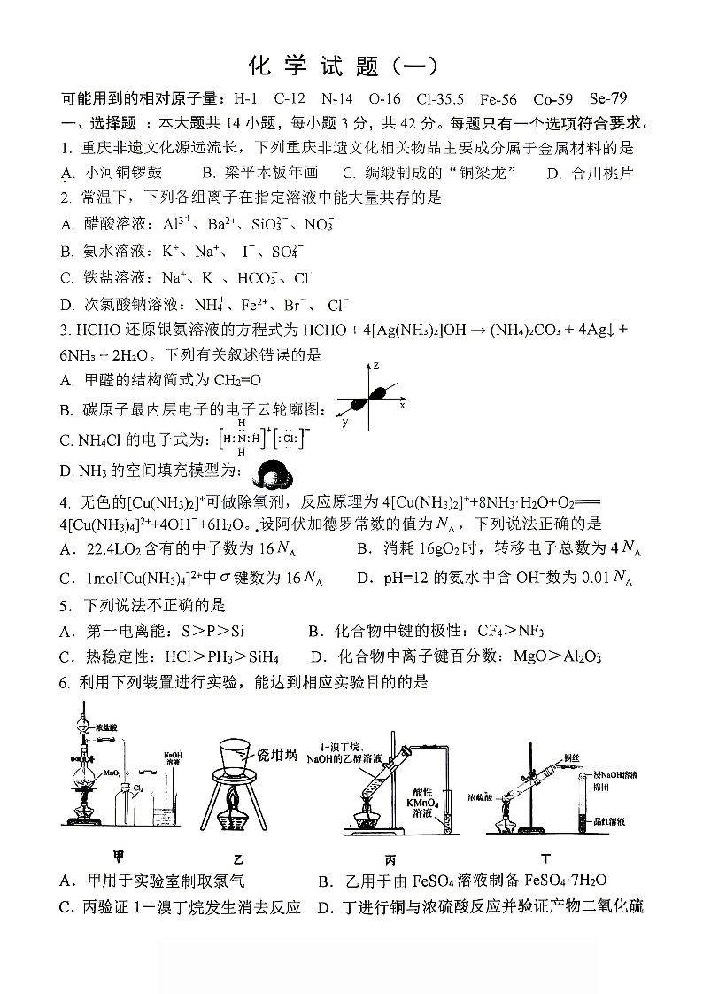 高三化学--重庆市第八中学2026届高三强化训练(一)