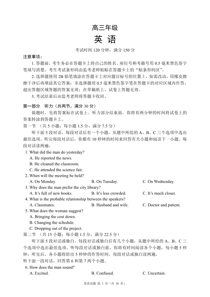高三英语--四川省蓉城名校联盟2026届高三第二次联合诊断性考试