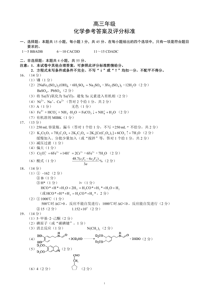 高三化学答案--四川省蓉城名校联盟2026届高三第二次联合诊断性考试