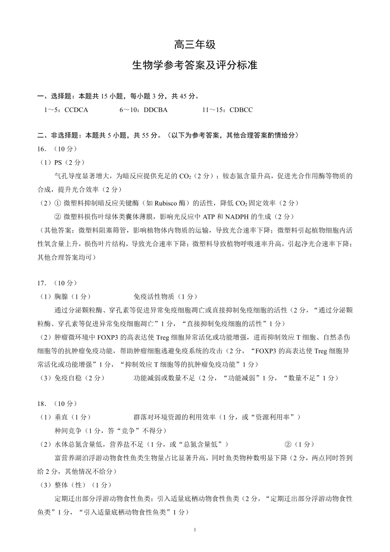 高三生物答案--四川省蓉城名校联盟2026届高三第二次联合诊断性考试