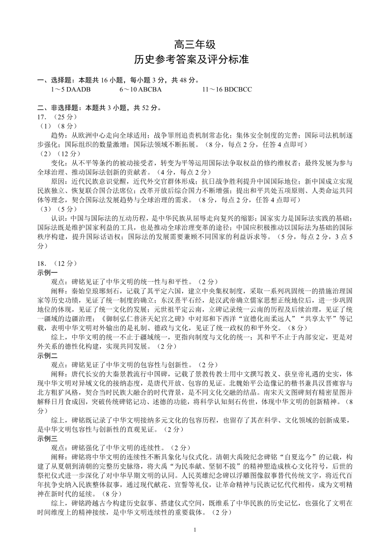 高三历史答案--四川省蓉城名校联盟2026届高三第二次联合诊断性考试