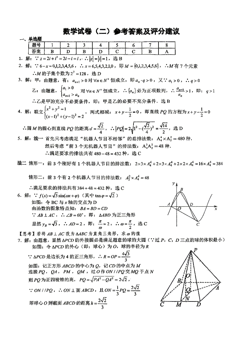 高三数学答案--重庆市第八中学2026届高三强化训练(二)