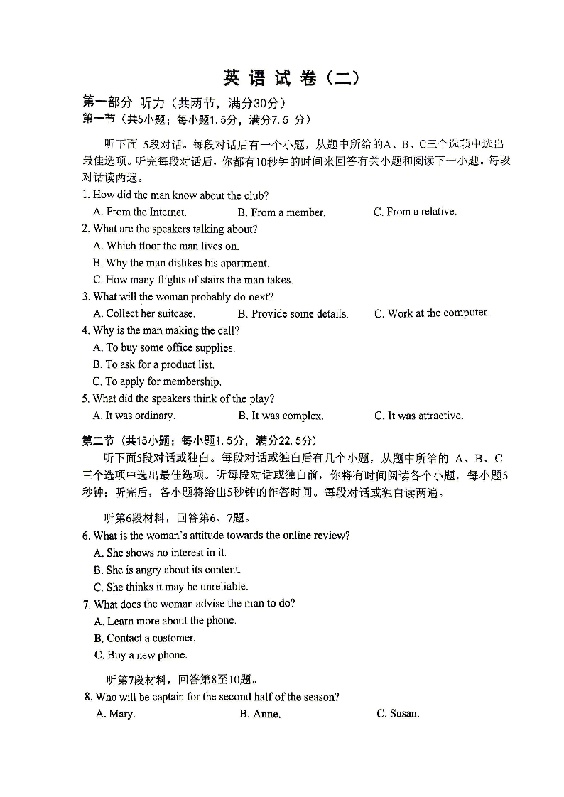 高三英语--重庆市第八中学2026届高三强化训练(二)