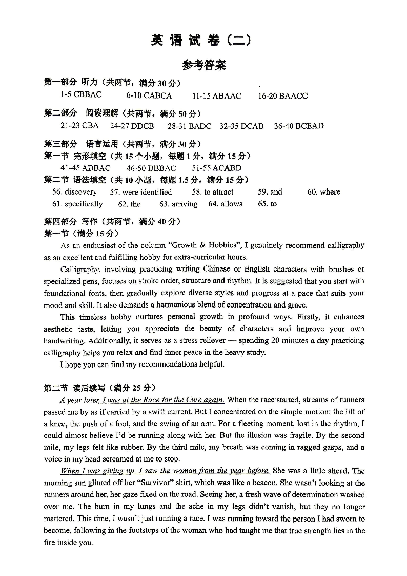 高三英语答案--重庆市第八中学2026届高三强化训练(二)