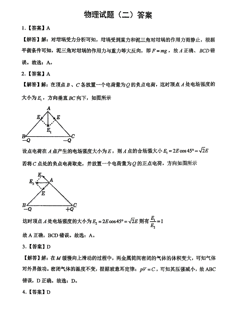 高三物理答案--重庆市第八中学2026届高三强化训练(二)