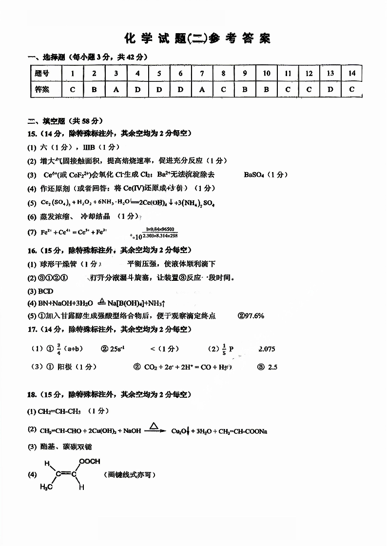 高三化学答案--重庆市第八中学2026届高三强化训练(二)