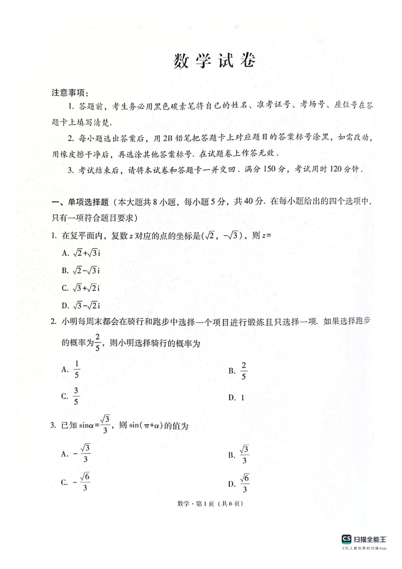 高三数学--云南省3+3+3西南名校联盟2026届高三4月联考