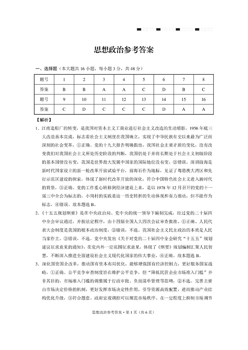 高三政治答案--云南省3+3+3西南名校联盟2026届高三4月联考