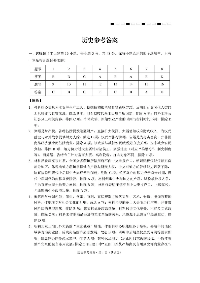 高三历史答案--云南省3+3+3西南名校联盟2026届高三4月联考
