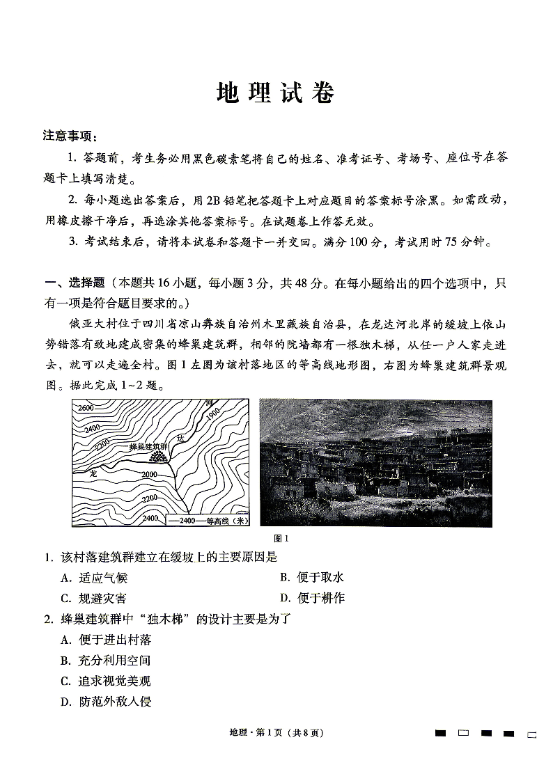 高三地理--贵州省六校联盟2026届高三4月高考实用性联考卷(三)