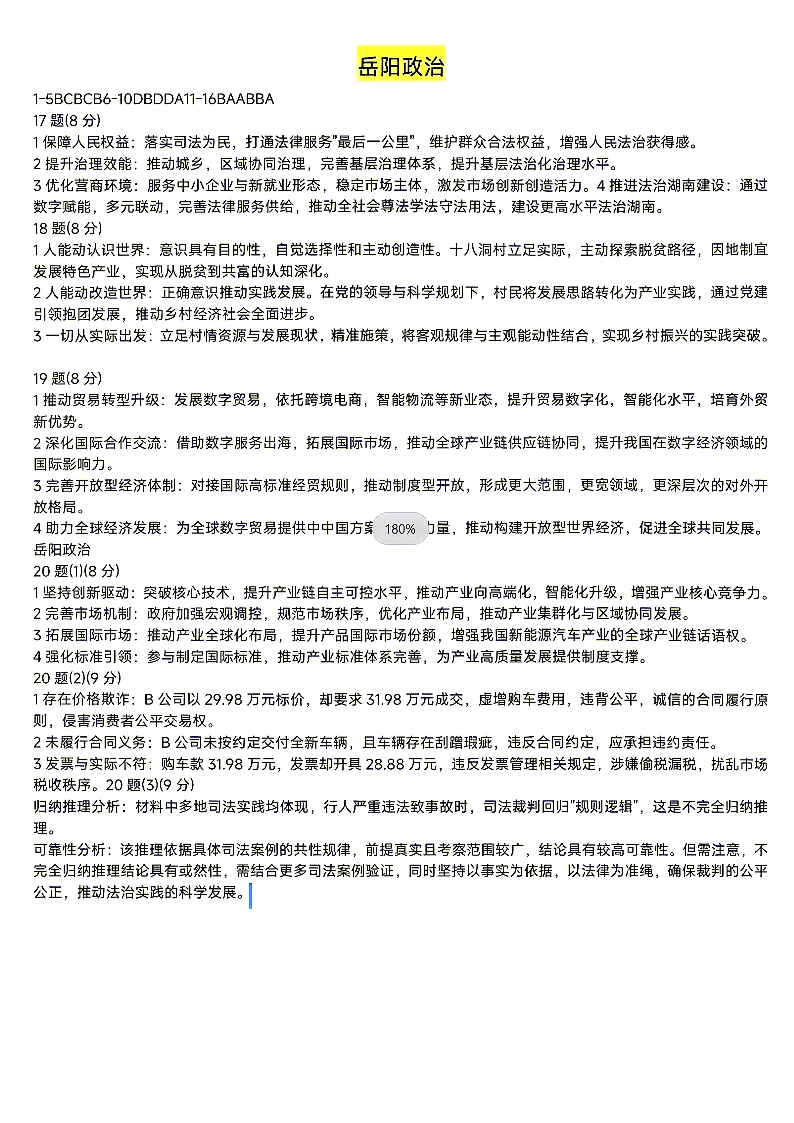 高三政治答案--湖南省岳阳市2026届高三4月教学质量监测(二)(岳阳二模)