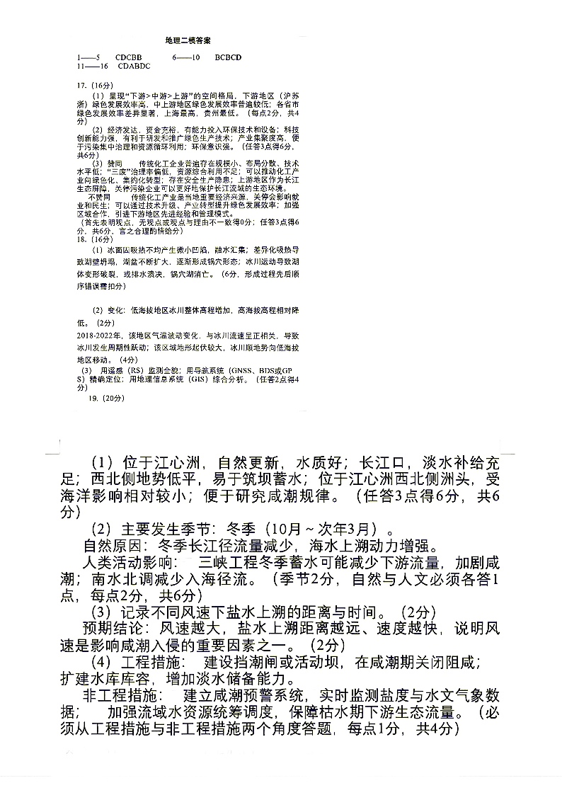高三地理答案--湖南省岳阳市2026届高三4月教学质量监测(二)(岳阳二模)
