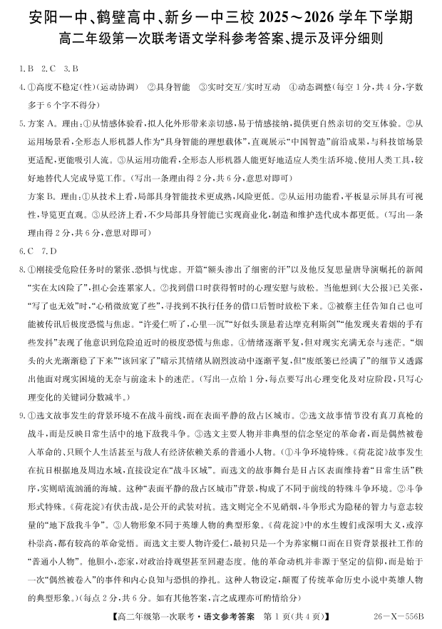 高二语文答案--河南省安阳一中、鹤壁高中、新乡一中三校2025~2026学年下学期高二年级第一次联考