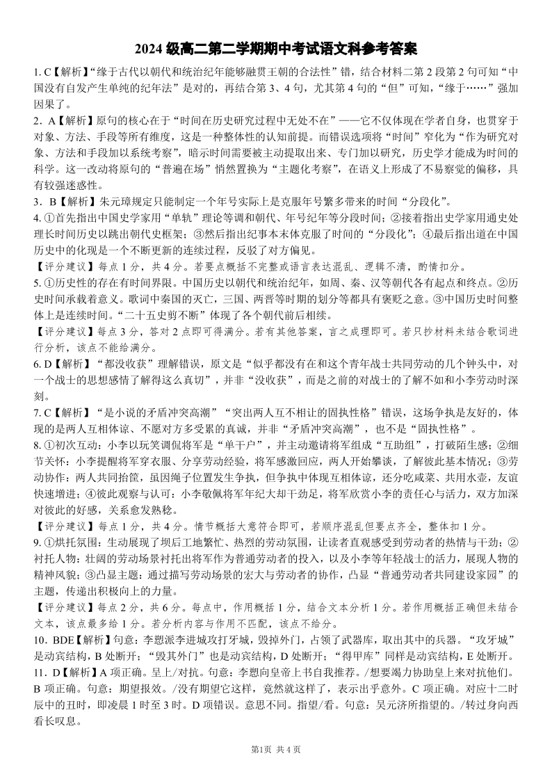 高二语文答案--广东省汕头市金山中学2025-2026学年高二下学期期中考试