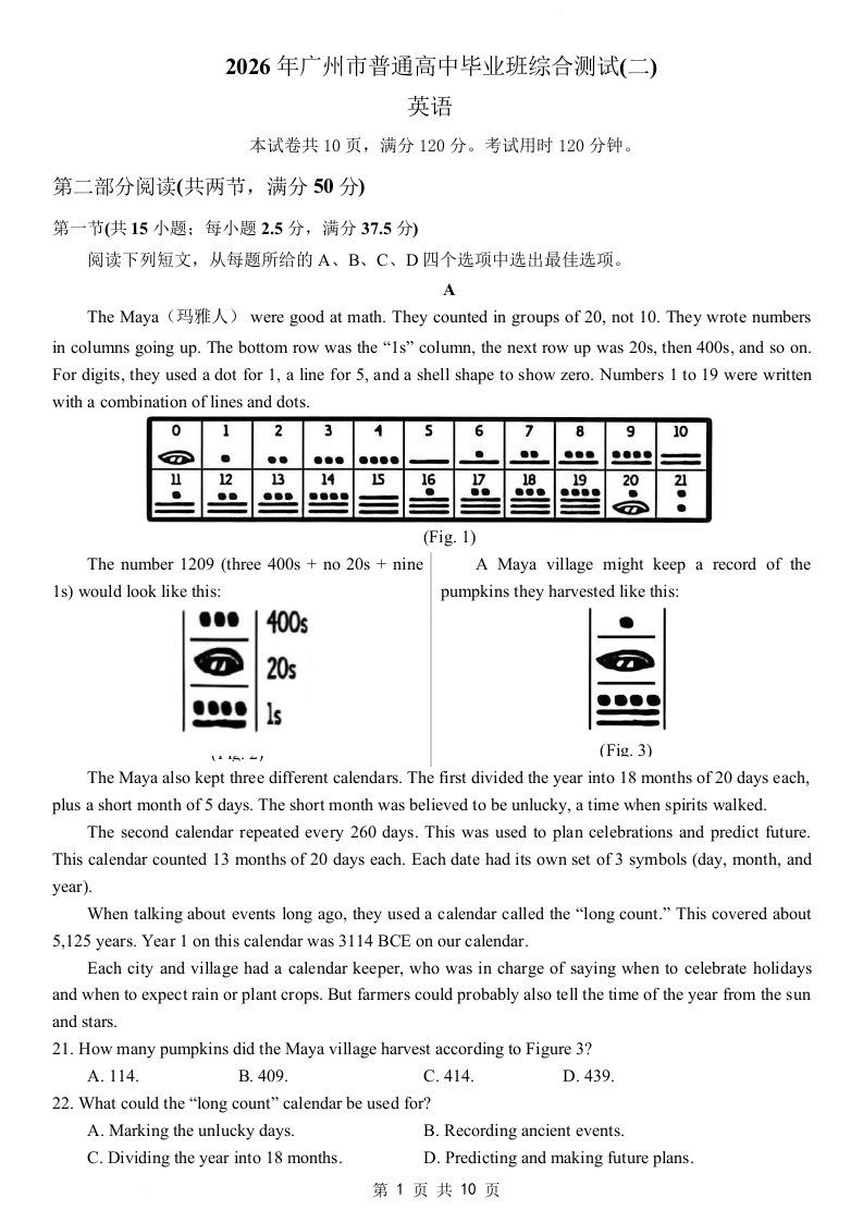 高三英语--广东省广州市2026届普通高中毕业班综合测试(二)(广州二模)