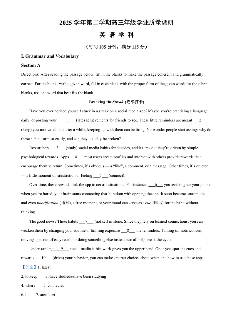 高三英语(解析版)--上海市闵行区2026届高三下学期二模