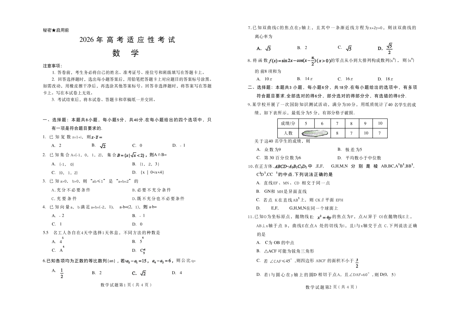 高三数学--四川省绵阳市高中2023级(2026届)高三第三次诊断性考试(绵阳三诊)