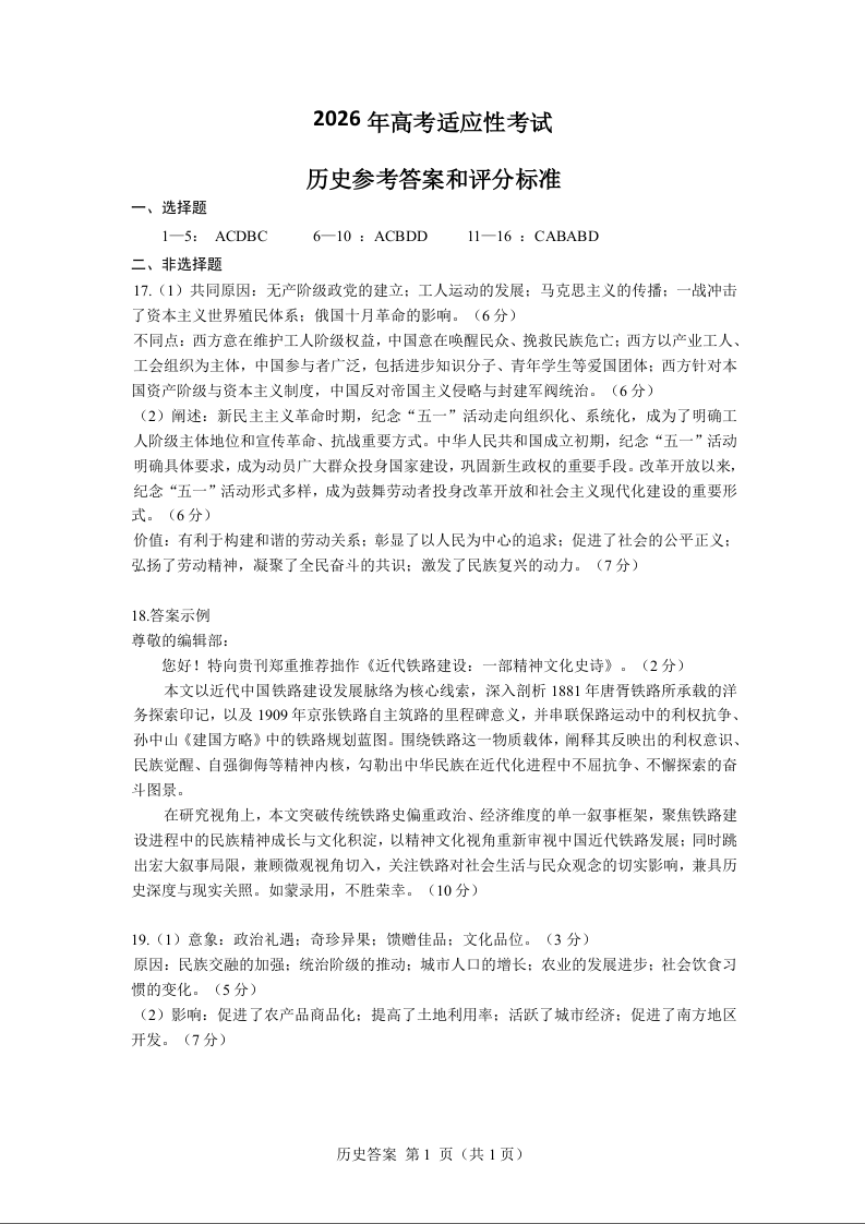 高三历史答案--四川省绵阳市高中2023级(2026届)高三第三次诊断性考试(绵阳三诊)