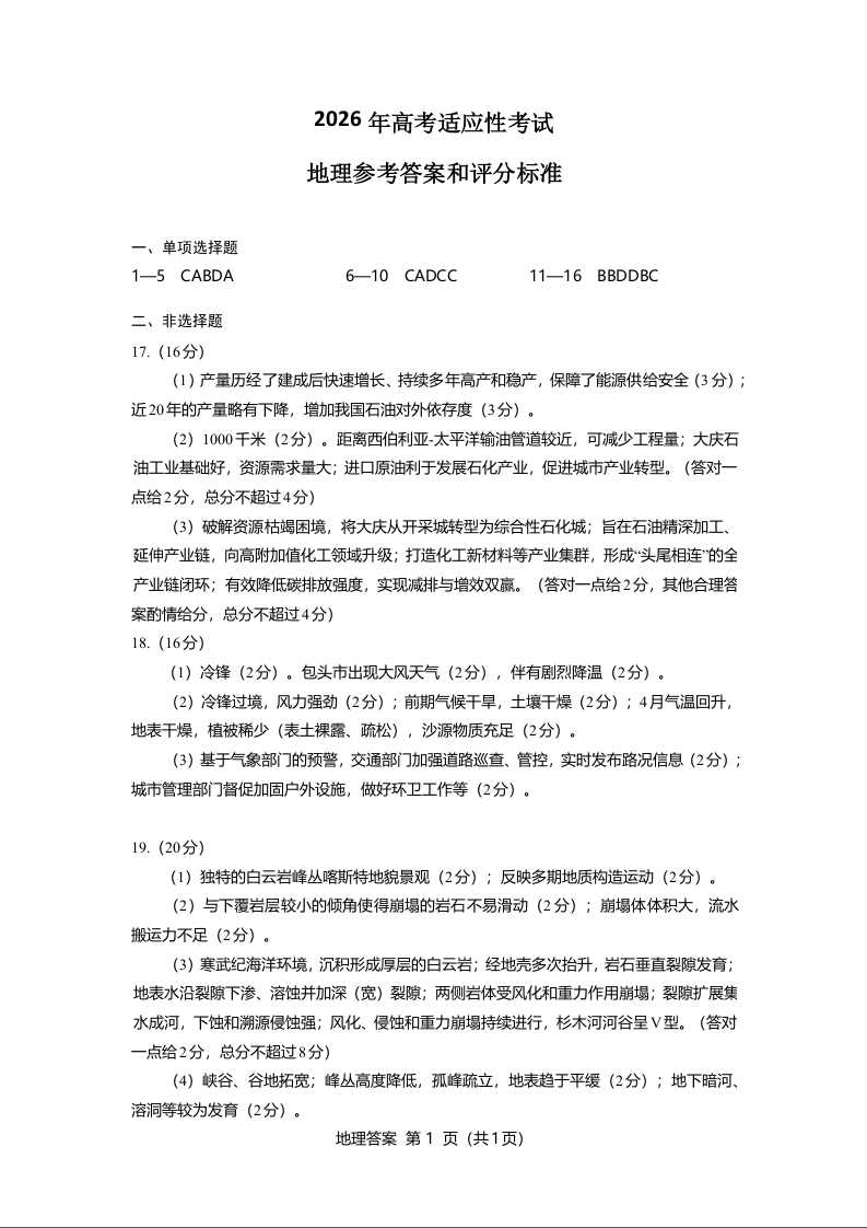 高三地理答案--四川省绵阳市高中2023级(2026届)高三第三次诊断性考试(绵阳三诊)