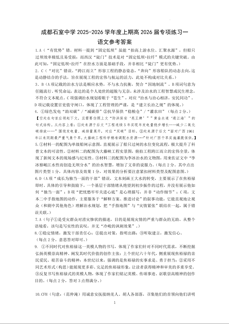 高三语文答案--四川省成都石室中学2026届高三4月专项训练