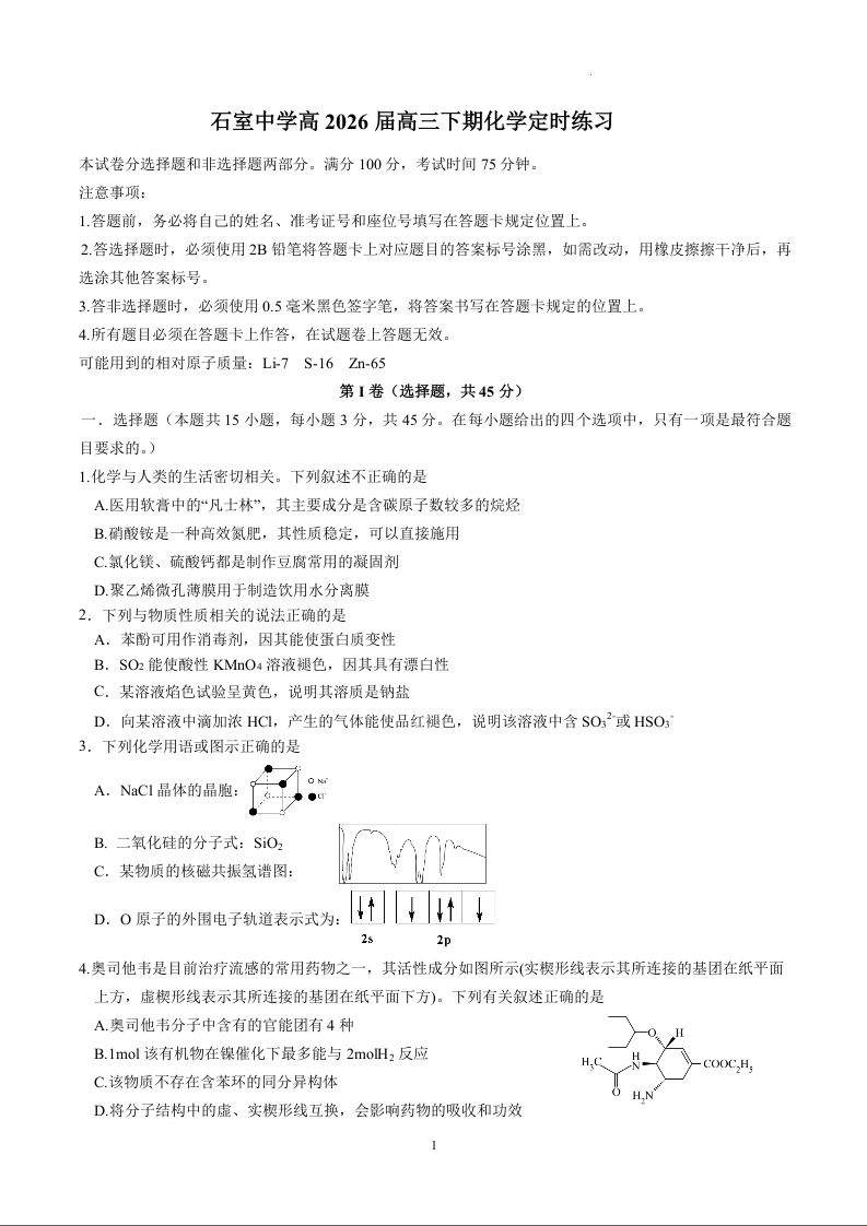 高三化学--四川省成都石室中学2026届高三4月专项训练