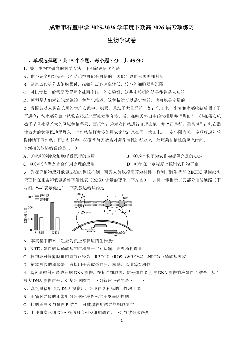 高三生物--四川省成都石室中学2026届高三4月专项训练