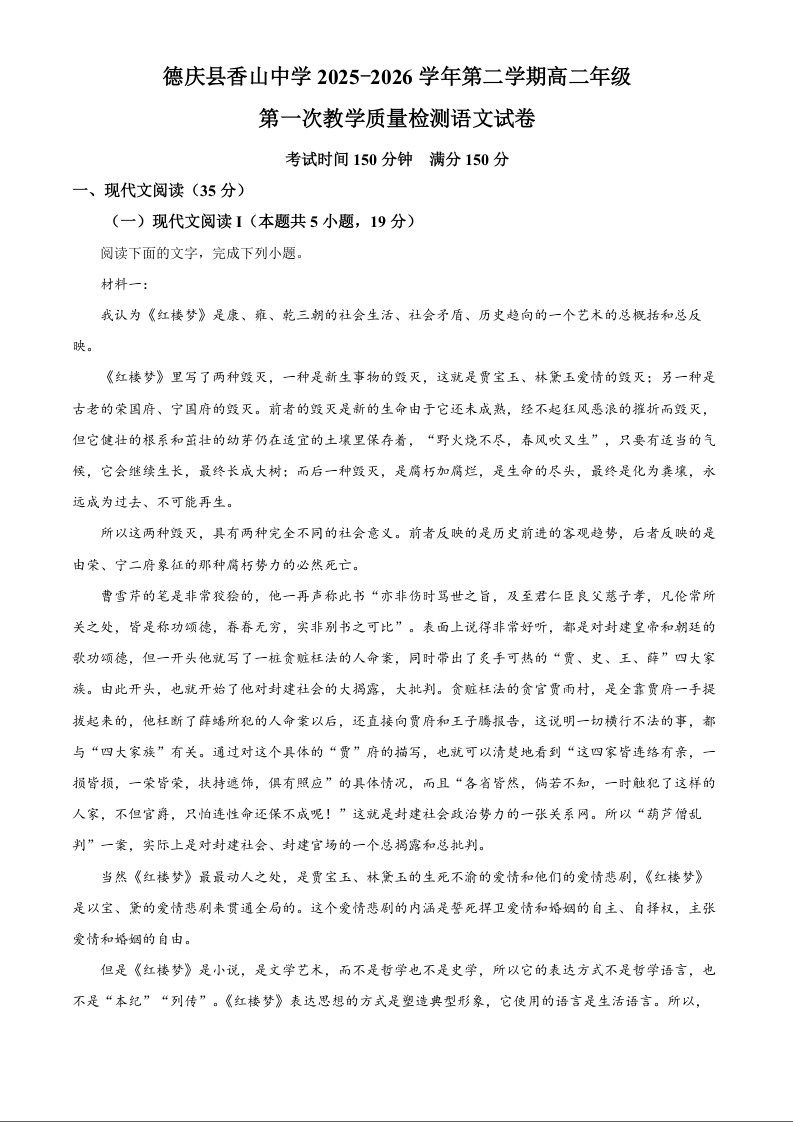 高二语文(解析版)--广东省肇庆市重点校2025-2026学年高二下学期4月期中考试