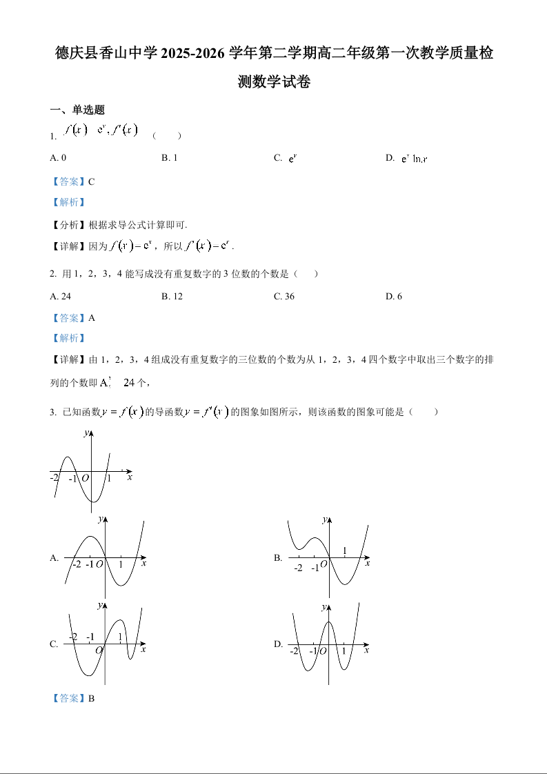 高二数学(解析版)--广东省肇庆市重点校2025-2026学年高二下学期4月期中考试