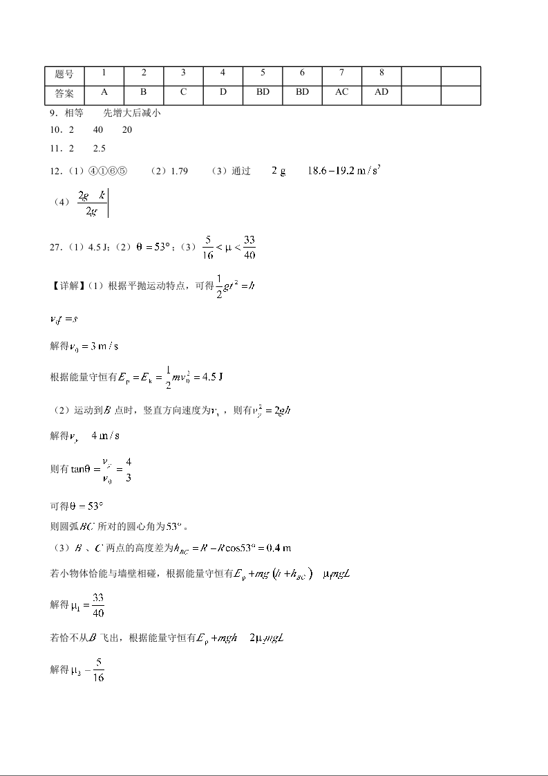 高一物理答案--福建省南平市重点学校2025-2026学年高一下学期4月适应性练习