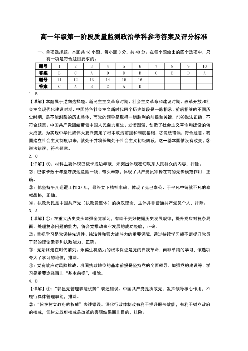 高一政治答案--广东省深圳市多校2025-2026学年高一下学期第一阶段质量监测联考
