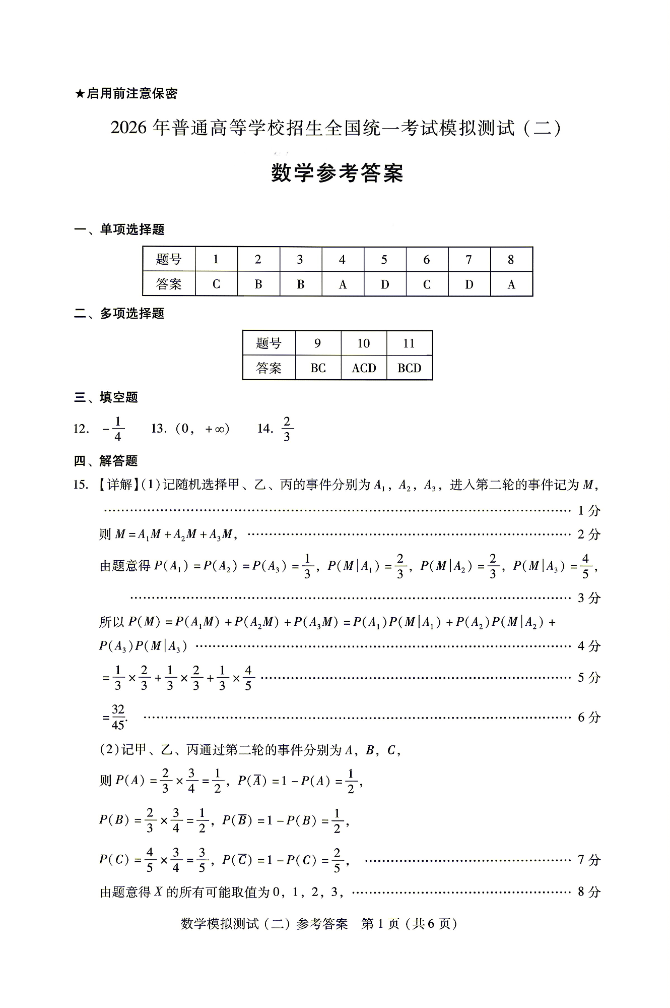 高三数学答案--广东省2026届高三下学期4月模拟测试(二)(广东二模)