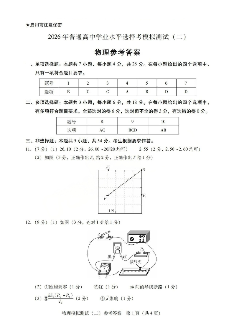 高三物理答案--广东省2026届高三下学期4月模拟测试(二)(广东二模)