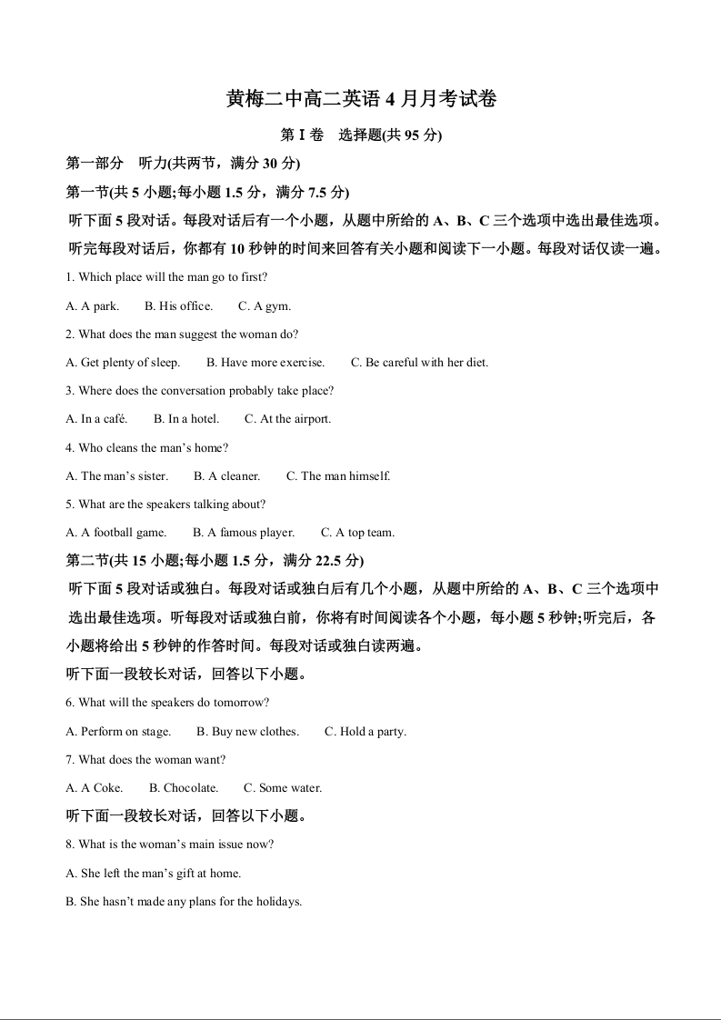 高三英语(解析版)--湖北省黄冈市重点校2025-2026学年高二下学期4月月考
