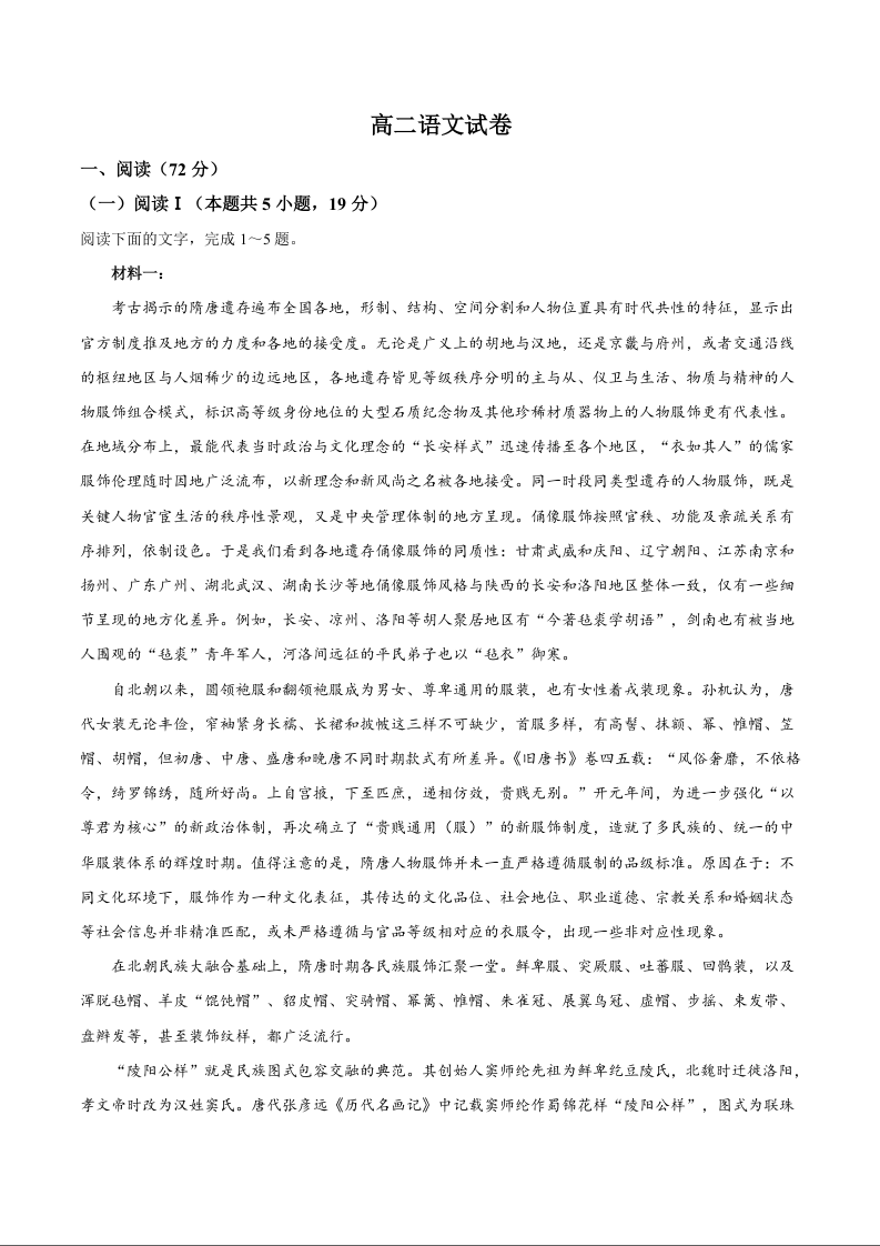 高二语文--湖北省武汉市洪山高级中学2025-2026学年高二下学期期中考试