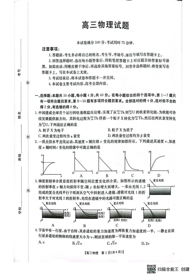 高三物理--湖北省随州市2026届高三下学期4月考前模拟预测
