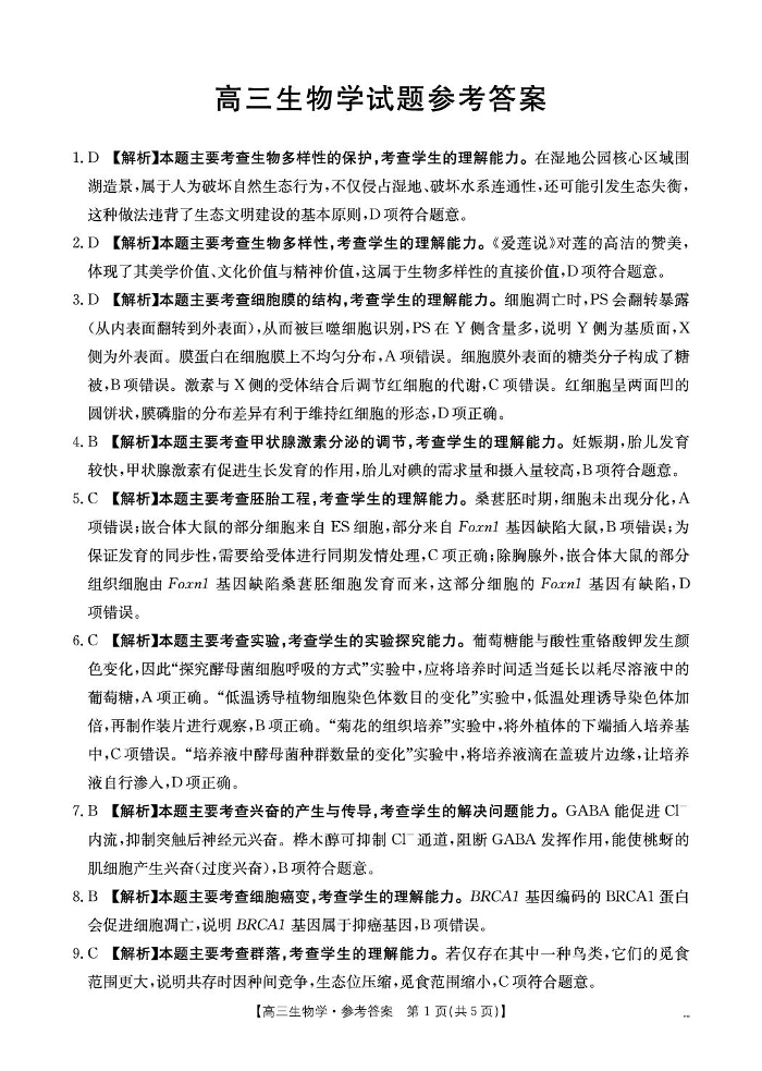 高三生物答案--湖北省随州市2026届高三下学期4月考前模拟预测