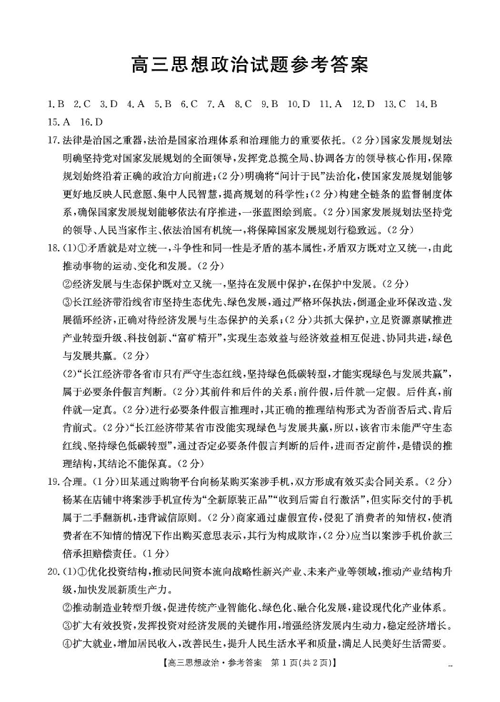 高三政治答案--湖北省随州市2026届高三下学期4月考前模拟预测