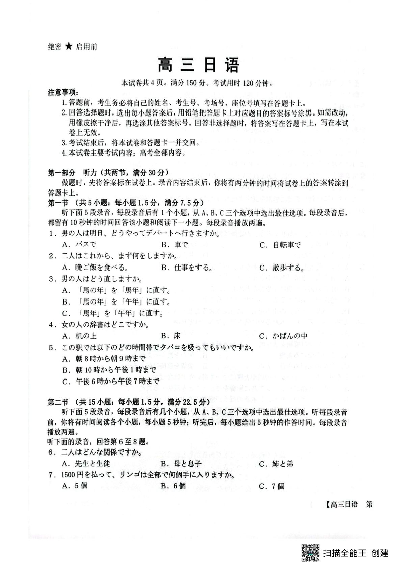 高三日语--湖北省随州市2026届高三下学期4月考前模拟预测