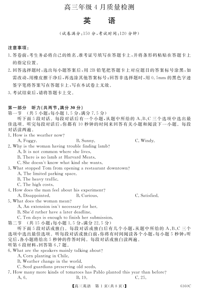 高三英语--湖南省天壹名校联盟2026届高三年级4月质量检测