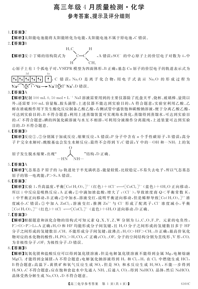 高三化学答案--湖南省天壹名校联盟2026届高三年级4月质量检测