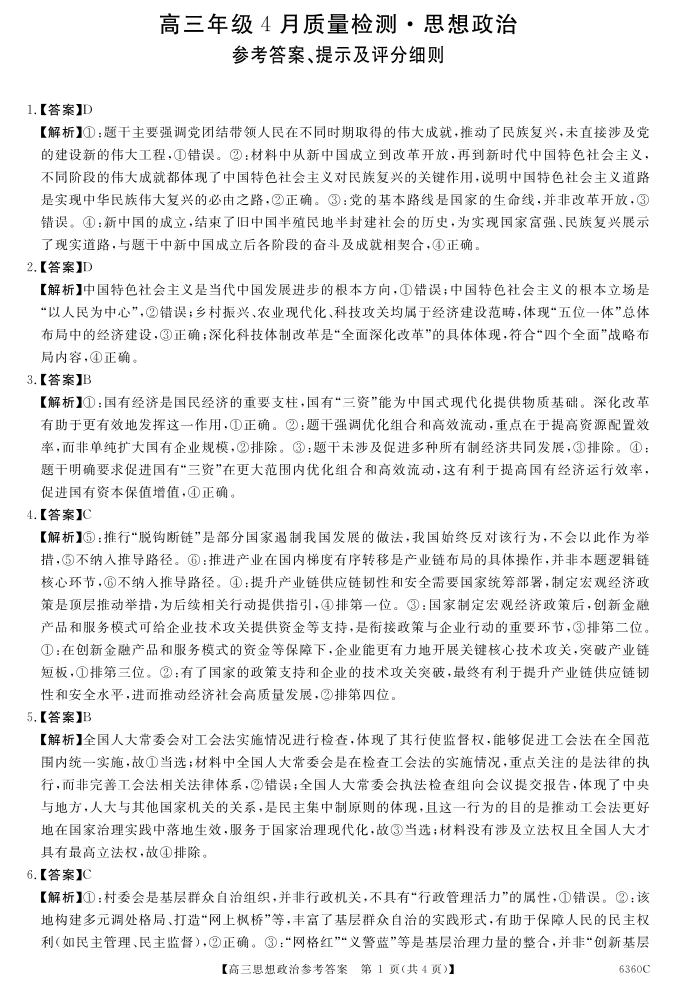 高三政治答案--湖南省天壹名校联盟2026届高三年级4月质量检测