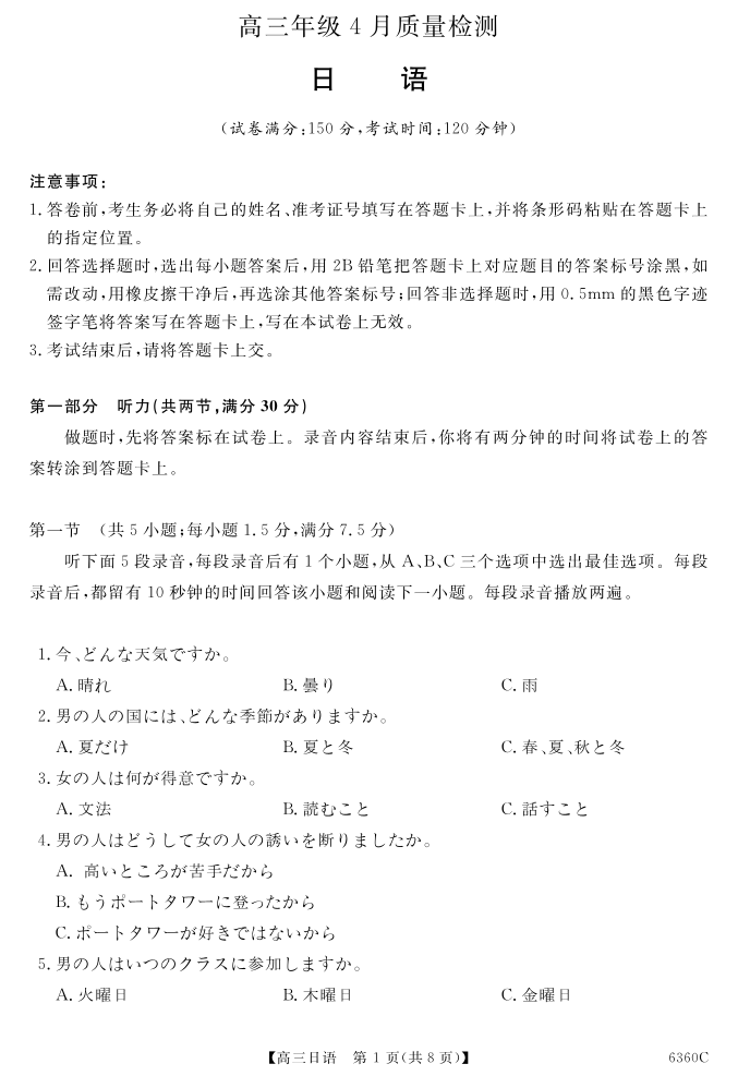 高三日语--湖南省天壹名校联盟2026届高三年级4月质量检测
