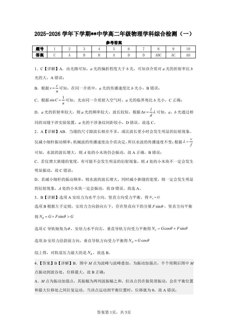 高二物理答案--江西省赣州市四校2025-2026学年高二下学期综合检测联考(一)