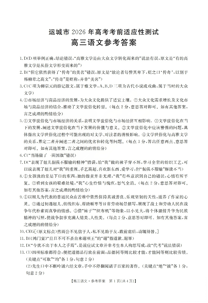 高三语文答案--山西省运城市2026 届高三4月高考考前适应性测试