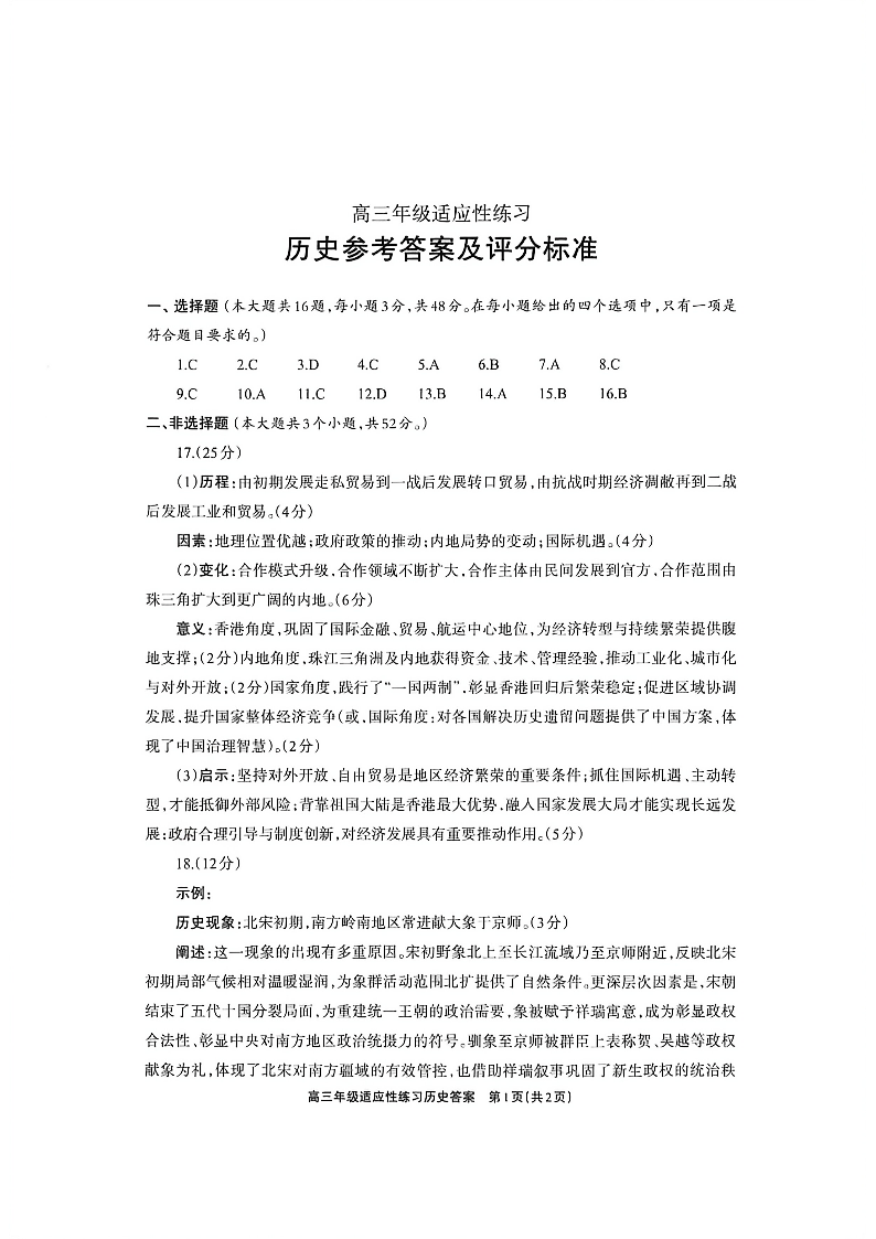 高三历史答案--四川省德阳市2026届高三年级适应性练习(德阳三诊)