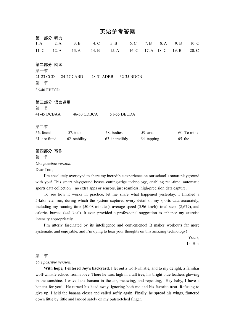 高三英语答案--山东省济宁市2026.4高三二模统考