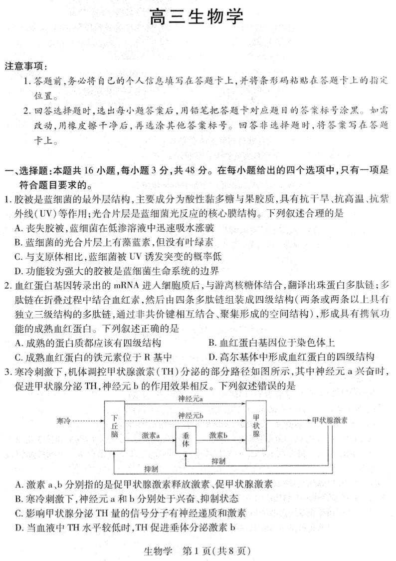 高三生物+答案--山西、陕西省天一大联考2026届高三下学期4月23-24联考