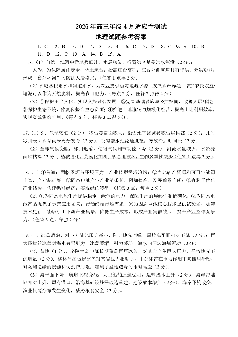 高三地理答案--山东省东营市2026届高三4月适应性测试(东营二模)