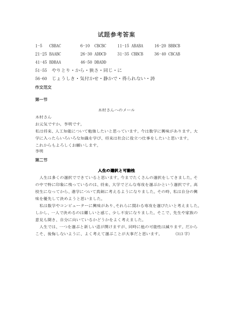 高三日语答案--山西省太原市2026届高三模拟考试(二)(太原二模)