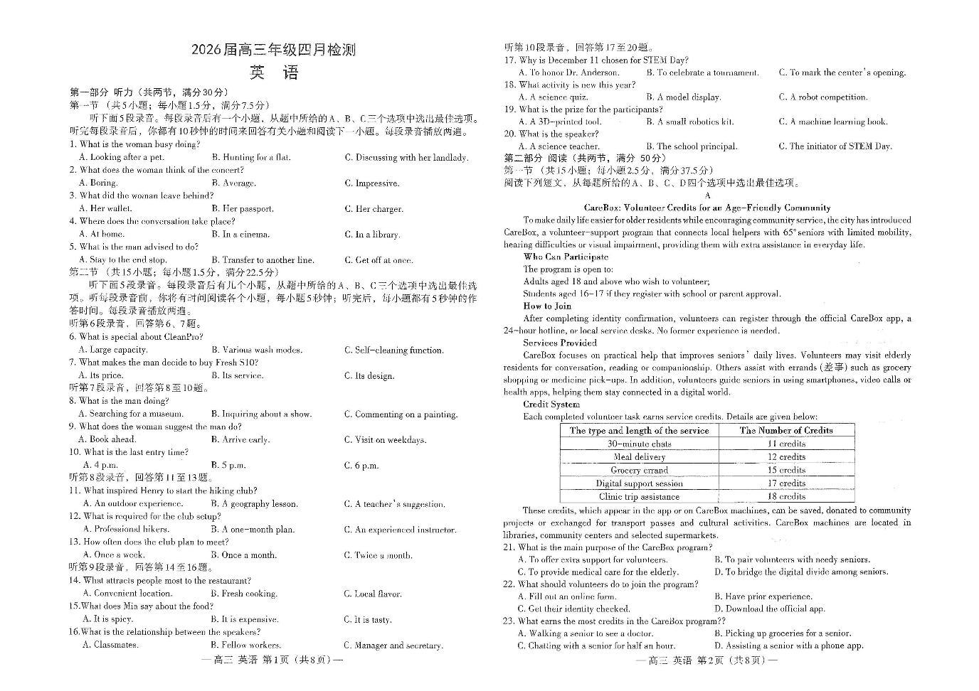 高三英语--江西省南昌市2026届高三下学期四月检测(南昌二模)